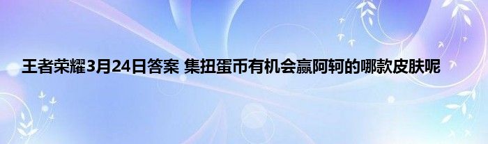 王者荣耀公众号每日都会推出一道问题,只需要回复wz+正确答案就可以获得每日奖励。今天(3月24日)的问题是:王者扭蛋机重新“营业”啦!昨日推文中提到的,集扭蛋币即可参与活动,有机会赢阿轲的哪款皮肤呢?小编这就来告诉大家王者荣耀3月24日每日一题答案的正确答案。