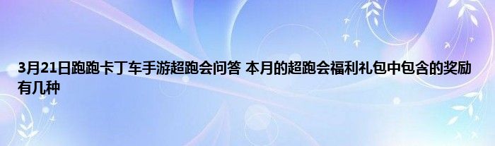 今天来聊聊关于3月21日跑跑卡丁车手游超跑会问答 本月的超跑会福利礼包中包含的奖励有几种的文章,游戏是很多人的选择,但是游戏玩多了也会身心疲惫,现在就为大家来简单介绍下3月21日跑跑卡丁车手游超跑会问答 本月的超跑会福利礼包中包含的奖励有几种,希望对各位小伙伴们有所帮助。