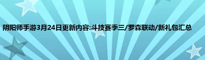 阴阳师手游3月24日上午迎来全新版本更新,「京武合战·斗技赛季·叁」正式上线!之前宣传已久的罗森联动活动也来了,还有武心客行皮肤、以及数个新礼包等同步降临。这就来了解下《阴阳师手游》今日更新内容详情吧。