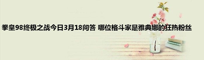今天来聊聊关于拳皇98终极之战今日3月18问答 哪位格斗家是雅典娜的狂热粉丝的文章,游戏是很多人的选择,但是游戏玩多了也会身心疲惫,现在就为大家来简单介绍下拳皇98终极之战今日3月18问答 哪位格斗家是雅典娜的狂热粉丝,希望对各位小伙伴们有所帮助。
