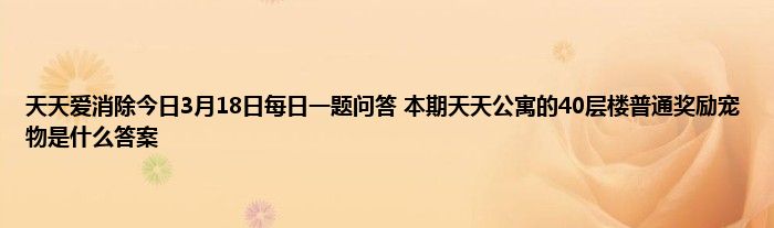 今天来聊聊关于天天爱消除今日3月18日每日一题问答 本期天天公寓的40层楼普通奖励宠物是什么答案的文章,游戏是很多人的选择,但是游戏玩多了也会身心疲惫,现在就为大家来简单介绍下天天爱消除今日3月18日每日一题问答 本期天天公寓的40层楼普通奖励宠物是什么答案,希望对各位小伙伴们有所帮助。