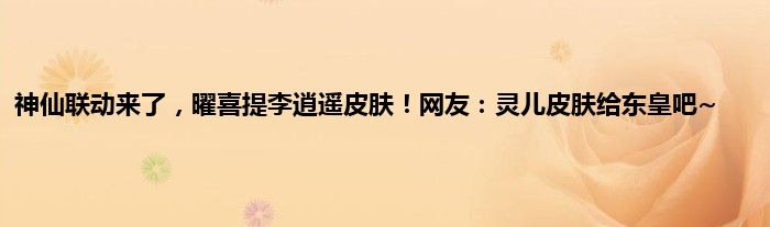 有位鬼才网友,推举赵灵儿皮肤给到东皇太一!乍一看,东皇太一和赵灵儿毫无关系,甚至性别都不一样!但是稍微思量,好家伙,赵灵儿和东皇都有尾巴,外形方面还真是接近呢~这位网友的思路果然非同一般~