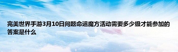 今天弟哥来聊聊一篇关于完美世界手游3月10日问题命运魔方活动需要多少级才能参加的答案是什么的文章,游戏是很多人的选择,但是游戏玩多了也会身心疲惫,现在就为大家来简单介绍下完美世界手游3月10日问题命运魔方活动需要多少级才能参加的答案是什么,希望对各位小伙伴们有所帮助。