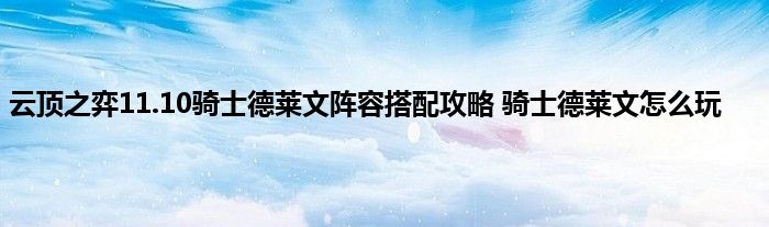 以上就是云顶之弈11.10骑士德莱文阵容分享全部内容,希翼能够帮到大家。