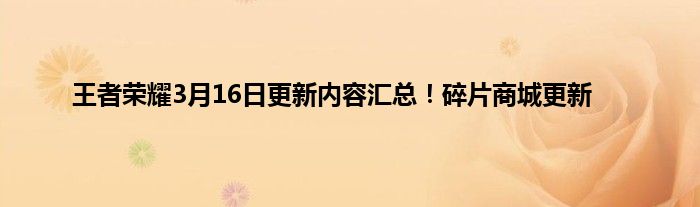 以上就是小编为大家带来的王者荣耀3月16日全服不停机更新公告,希望对各位玩家有所帮助。