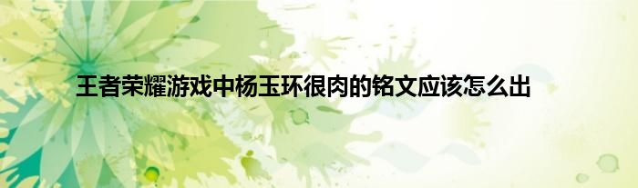 今天弟哥来聊聊一篇关于王者荣耀游戏中杨玉环很肉的铭文应该怎么出的文章,游戏是很多人的选择,但是游戏玩多了也会身心疲惫,现在就为大家来简单介绍下王者荣耀游戏中杨玉环很肉的铭文应该怎么出,希望对各位小伙伴们有所帮助。