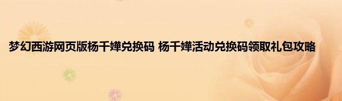梦幻西游网页版杨千嬅兑换码分享。大师姐杨千嬅回归《梦幻西游网页版》,官方也特推出了杨千嬅伙伴活动和兑换码可以领取。这就来看看梦幻西游网页版杨千嬅兑换码礼包领取攻略吧。