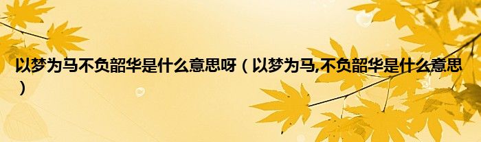 大家好,小科来为大家解答以上问题。以梦为马不负韶华是什么意思呀,以梦为马,不负韶华是什么意思很多人还不知道,现在让我们一起来看看吧!