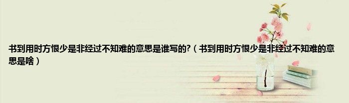 大家好,小科来为大家解答以上问题。书到用时方恨少是非经过不知难的意思是谁写的?,书到用时方恨少是非经过不知难的意思是啥很多人还不知道,现在让我们一起来看看吧!