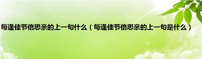 大家好,小科来为大家解答以上问题。每逢佳节倍思亲的上一句什么,每逢佳节倍思亲的上一句是什么很多人还不知道,现在让我们一起来看看吧!