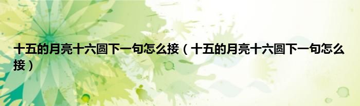 大家好,小科来为大家解答以上问题。十五的月亮十六圆下一句怎么接,十五的月亮十六圆下一句怎么接很多人还不知道,现在让我们一起来看看吧!