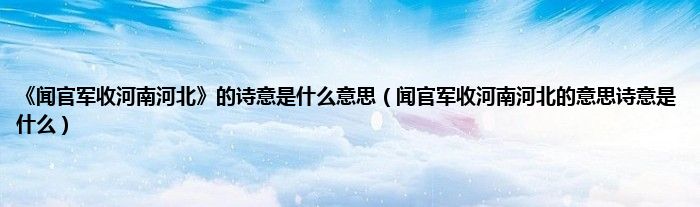大家好,小科来为大家解答以上问题。《闻官军收河南河北》的诗意是什么意思,闻官军收河南河北的意思诗意是什么很多人还不知道,现在让我们一起来看看吧!