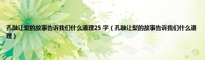 大家好,小科来为大家解答以上问题。孔融让梨的故事告诉我们什么道理25 字,孔融让梨的故事告诉我们什么道理很多人还不知道,现在让我们一起来看看吧!