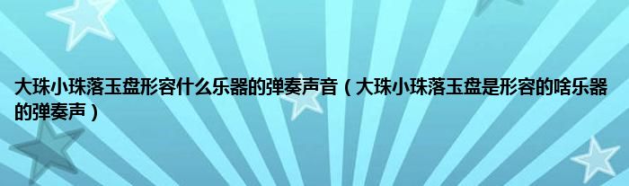 大家好,小科来为大家解答以上问题。大珠小珠落玉盘形容什么乐器的弹奏声音,大珠小珠落玉盘是形容的啥乐器的弹奏声很多人还不知道,现在让我们一起来看看吧!