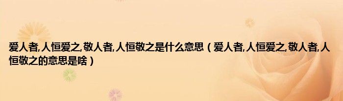 爱人者,人恒爱之,敬人者,人恒敬之是什么意思(爱人者,人恒爱之,敬人者,人恒敬之的意思是啥)