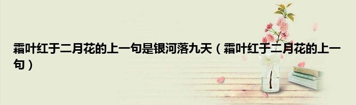 大家好,小科来为大家解答以上问题。霜叶红于二月花的上一句是银河落九天,霜叶红于二月花的上一句很多人还不知道,现在让我们一起来看看吧!