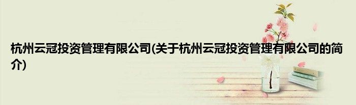 本文关于杭州云冠投资管理有限公司的简介就讲解完毕,希望对大家有所帮助。
