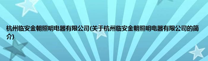 本文关于杭州临安金朝照明电器有限公司的简介就讲解完毕,希望对大家有所帮助。