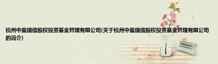 本文关于杭州中盈瑞信股权投资基金管理有限公司的简介就讲解完毕,希望对大家有所帮助。