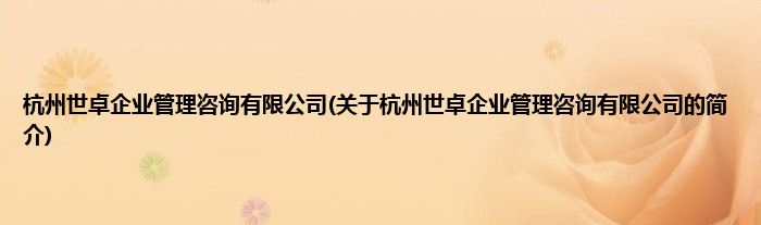 本文关于杭州世卓企业管理咨询有限公司的简介就讲解完毕,希望对大家有所帮助。