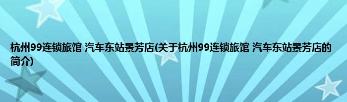 本文关于杭州99连锁旅馆 汽车东站景芳店的简介就讲解完毕,希望对大家有所帮助。