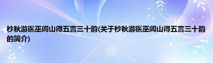 本文关于杪秋游医巫闾山得五言三十韵的简介就讲解完毕,希望对大家有所帮助。