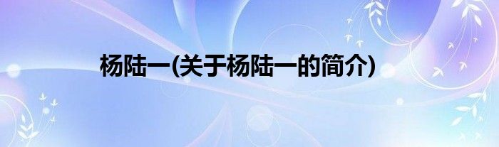 大家好,杨陆一,关于杨陆一的简介很多人还不知道,现在让我们一起来看看吧!