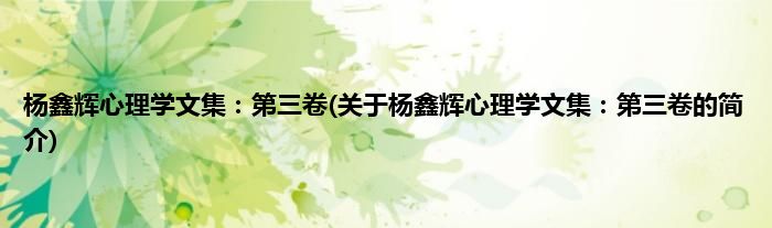 本文关于杨鑫辉心理学文集:第三卷的简介就讲解完毕,希望对大家有所帮助。