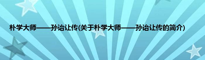 大家好,朴学大师——孙诒让传,关于朴学大师——孙诒让传的简介很多人还不知道,现在让我们一起来看看吧!