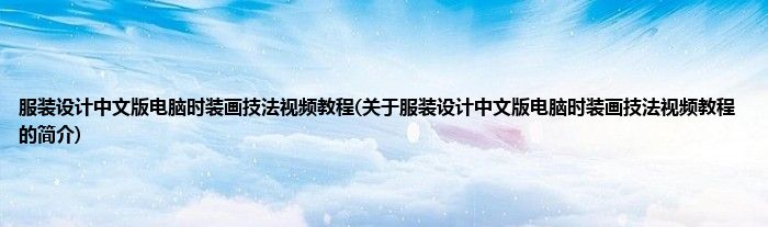 服装设计中文版电脑时装画技法视频教程(关于服装设计中文版电脑时装画技法视频教程的简介)