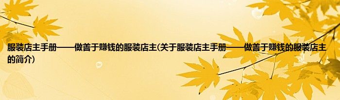 服装店主手册——做善于赚钱的服装店主(关于服装店主手册——做善于赚钱的服装店主的简介)