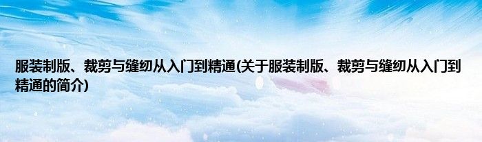 本文关于服装制版、裁剪与缝纫从入门到精通的简介就讲解完毕,希望对大家有所帮助。