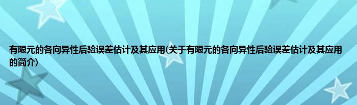 本文关于有限元的各向异性后验误差估计及其应用的简介就讲解完毕,希望对大家有所帮助。