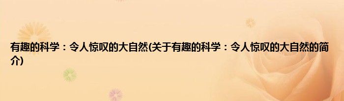 大家好,有趣的科学:令人惊叹的大自然,关于有趣的科学:令人惊叹的大自然的简介很多人还不知道,现在让我们一起来看看吧!