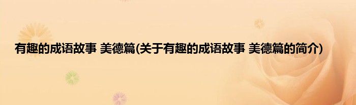 本文关于有趣的成语故事。美德篇的简介就讲解完毕,希望对大家有所帮助。