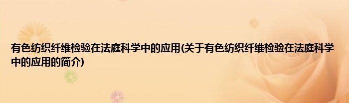 本文关于有色纺织纤维检验在法庭科学中的应用的简介就讲解完毕,希望对大家有所帮助。