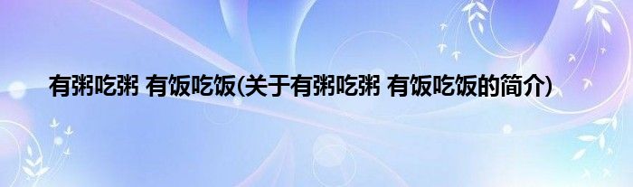 本文关于有粥吃粥,有饭吃饭的简介就讲解完毕,希望对大家有所帮助。