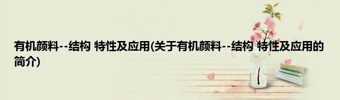 2、特性及应用是介绍有机颜料的结构、特性及应用的书籍。