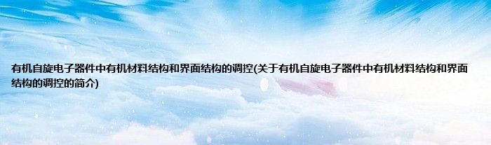 本文关于有机自旋电子器件中有机材料结构和界面结构的调控的简介就讲解完毕,希望对大家有所帮助。