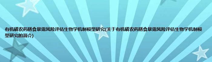 本文关于有机磷农药膳食暴露风险评估生物学机制模型研究的简介就讲解完毕,希望对大家有所帮助。