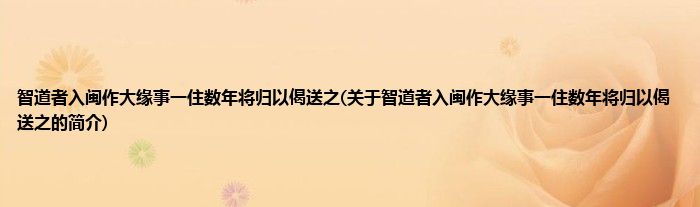 本文关于智道者入闽作大缘事一住数年将归以偈送之的简介就讲解完毕,希望对大家有所帮助。