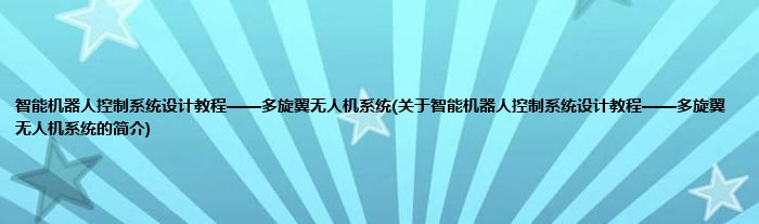 本文关于智能机器人控制系统设计教程——多旋翼无人机系统的简介就讲解完毕,希望对大家有所帮助。