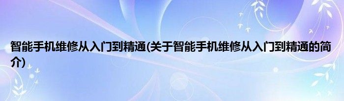 大家好,智能手机维修从入门到精通,关于智能手机维修从入门到精通的简介很多人还不知道,现在让我们一起来看看吧!
