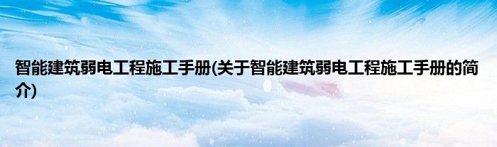 大家好,智能建筑弱电工程施工手册,关于智能建筑弱电工程施工手册的简介很多人还不知道,现在让我们一起来看看吧!