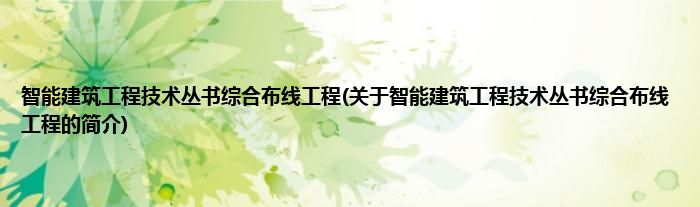 本文关于智能建筑工程技术丛书综合布线工程的简介就讲解完毕,希望对大家有所帮助。