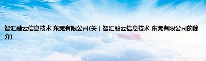 本文关于智汇融云信息技术 东莞有限公司的简介就讲解完毕,希望对大家有所帮助。