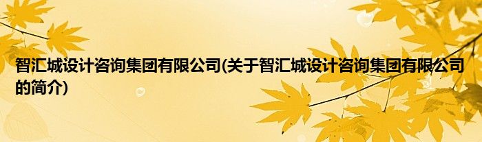 智汇城设计咨询集团有限公司(关于智汇城设计咨询集团有限公司的简介)