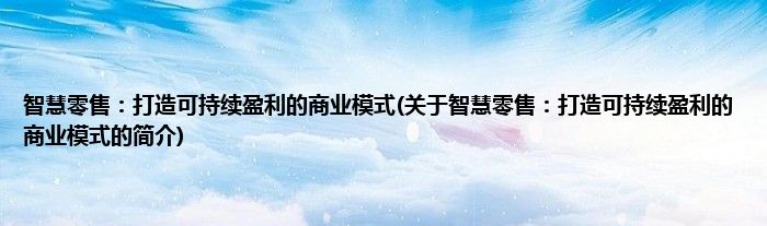 本文关于智慧零售:打造可持续盈利的商业模式的简介就讲解完毕,希望对大家有所帮助。