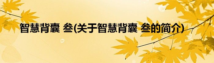 智慧背囊 叁(关于智慧背囊 叁的简介)