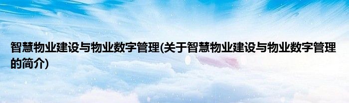 大家好,智慧物业建设与物业数字管理,关于智慧物业建设与物业数字管理的简介很多人还不知道,现在让我们一起来看看吧!